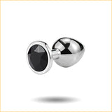 In seamless silvery metal, the Small Black Gem Anal Plug is safe for sensitive skin. Extremely easy to clean, a must-have feature of any good quality anal toy, this plug will be squeaky clean after a thorough scrub using warm soapy water or a good antibacterial toy care fluid/foam. Compatible with all lubricant types. Avoid abrasive surfaces to keep this plug in play-ready shape for the long haul.