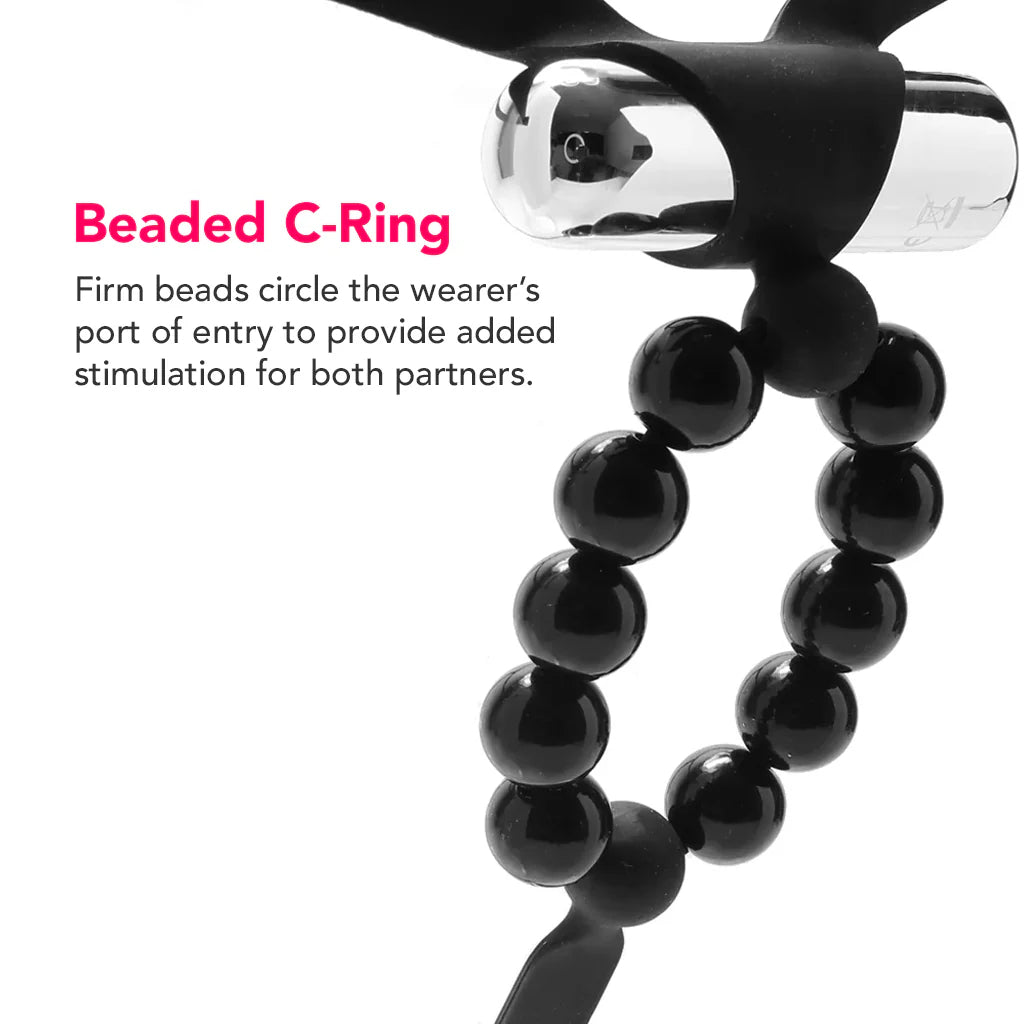 Meant to be enjoyed by both partners at once, the Cheeky is a versatile silicone vibrating g-string. It features a removable 3-speed metallic bullet (which works great solo, too!) and a ring of firm little balls circling the wearer's "port of entry." During sex, these beads rock and roll along the shaft of a penis or dildo for extra texture, while the bullet tucks securely into a special holder to buzz and throb against the clitoris. It is the perfect hands-free clitoral stimulator for intimacy. 🌊