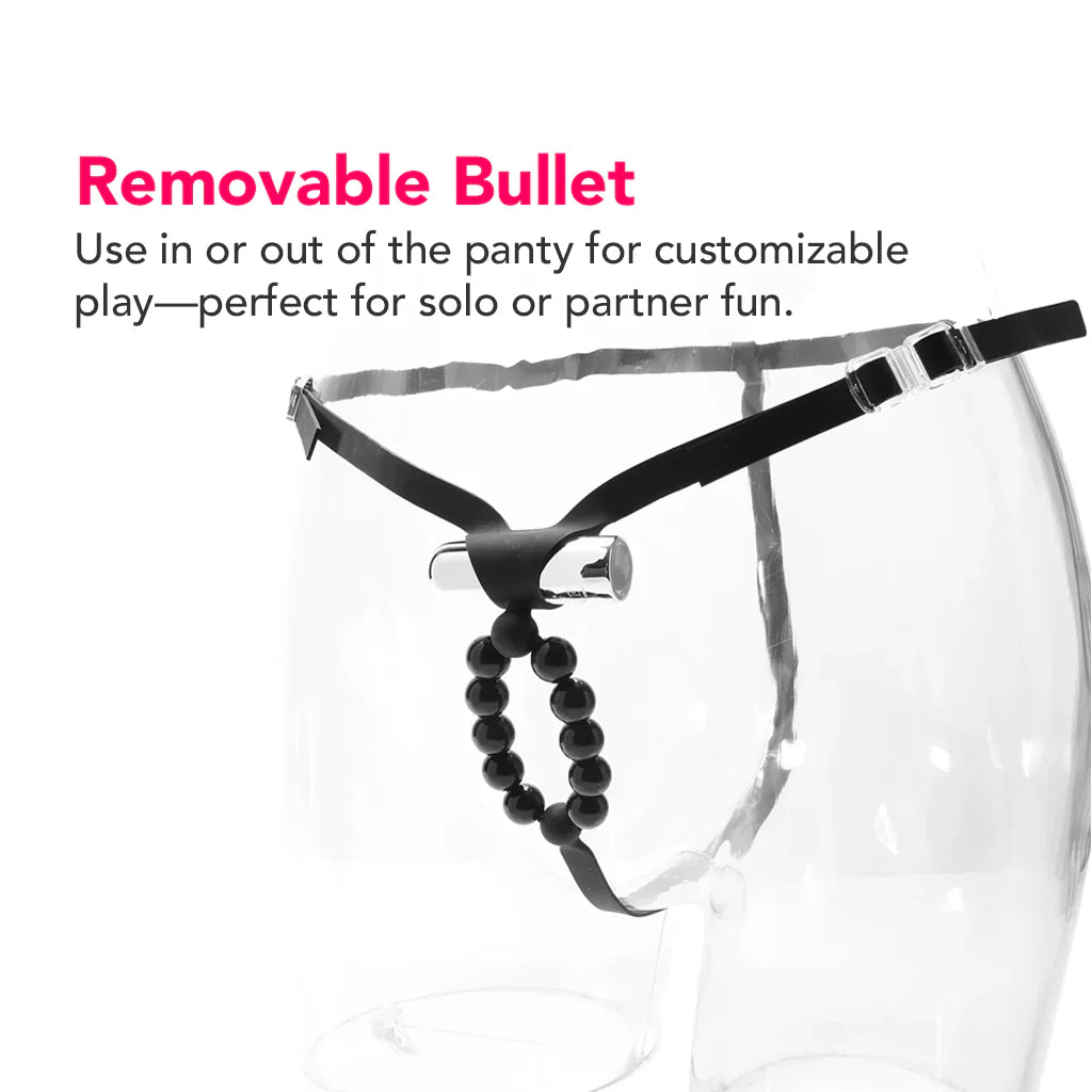 We can all agree that pleasure is almost always better when it's mutual, right? Yes! Mutual pleasure was definitely the goal for this design. Meet the Cheeky Panty—a wearable couples vibrator that combines slinky, butt-baring silicone straps with a fully rechargeable bullet vibe and massaging pleasure beads for the ultimate shared experience! 💖